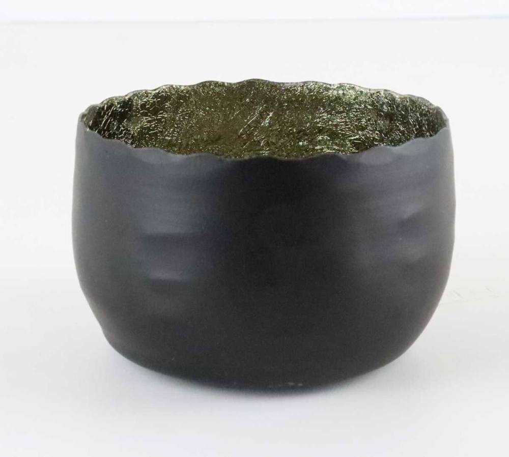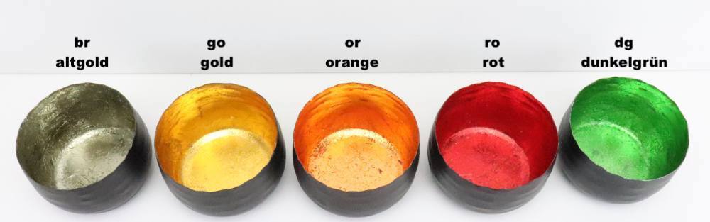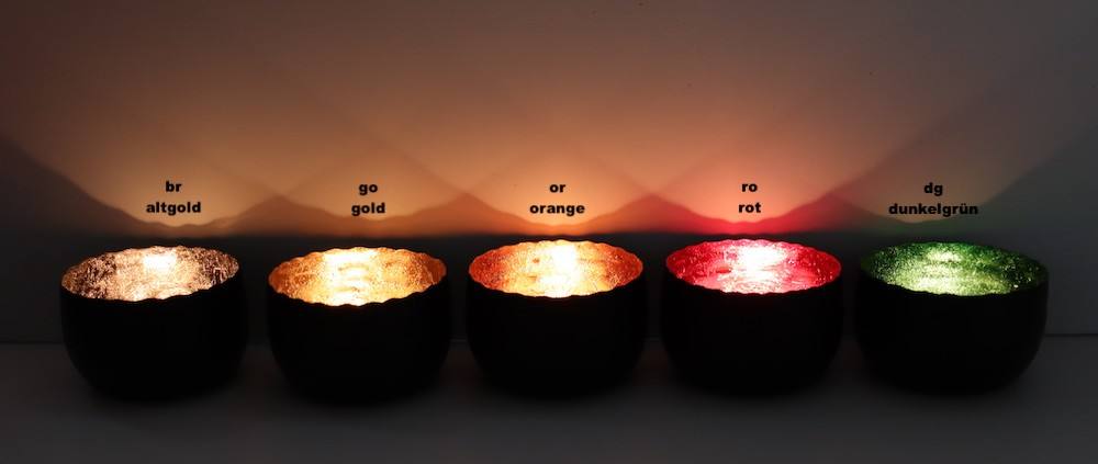 Sehr stimmungsvolles Windlicht aus stabilem Metall rund geformt in matt schwarz pulverbeschichtet auf der Aussenseite. Innen ist eine Farbfolie eingearbeitet, durch die entstehenden Falten und Knicke reflektiert das Licht bzw. das Kerzenlicht in voller Pracht. Lieferumfang: 1x Windlicht Größe A
